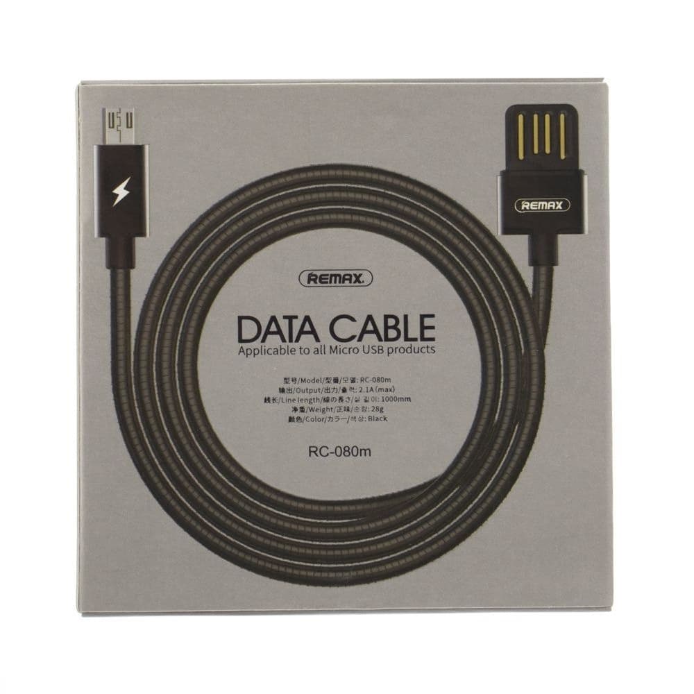 USB-кабель Remax RC-080m, Micro-USB, 2.1 А, в металлической оплетке, 100 см, чорний