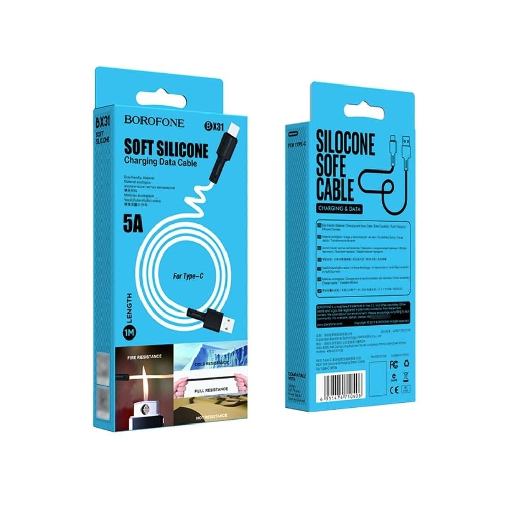 USB-кабель Borofone BX31, Type-C, 5.0 А, 100 см, білий