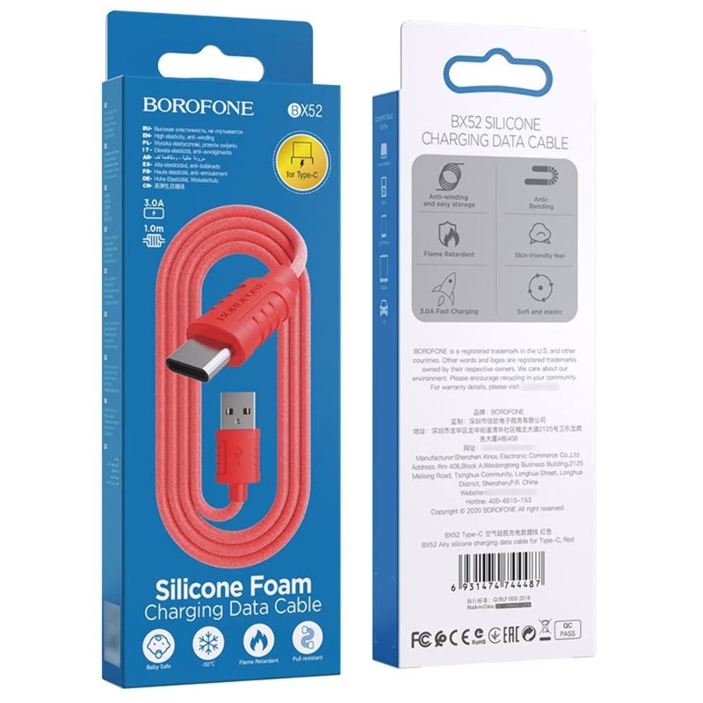 USB-кабель Borofone BX52, Type-C, 3.0 А, 100 см, красный