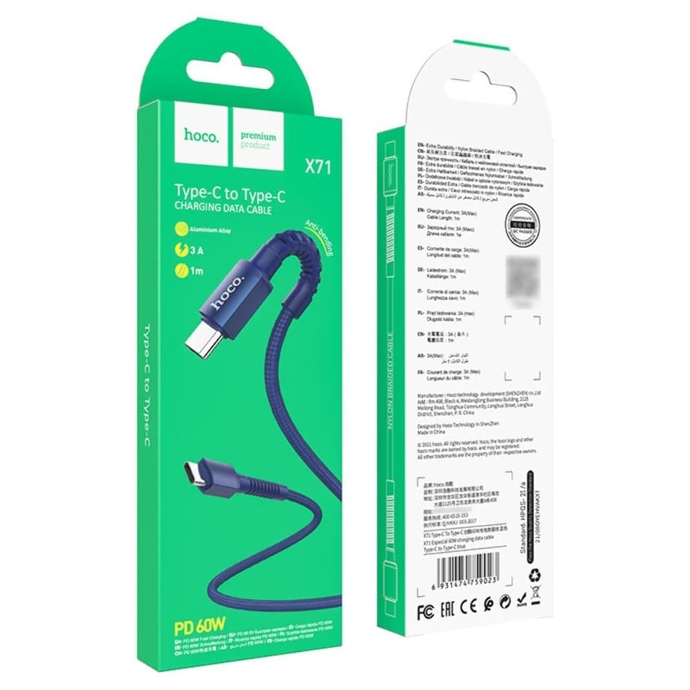 USB-кабель Hoco X71, Type-C на Type-C, 100 см, Power Delivery (60 Вт), синій