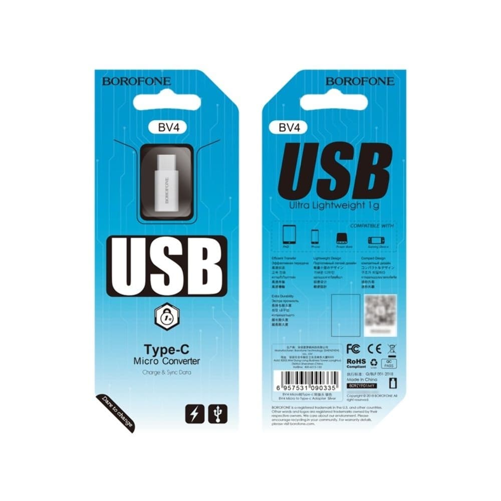 Адаптер OTG Borofone BV4, Type-C на Micro-USB (F), серебристый