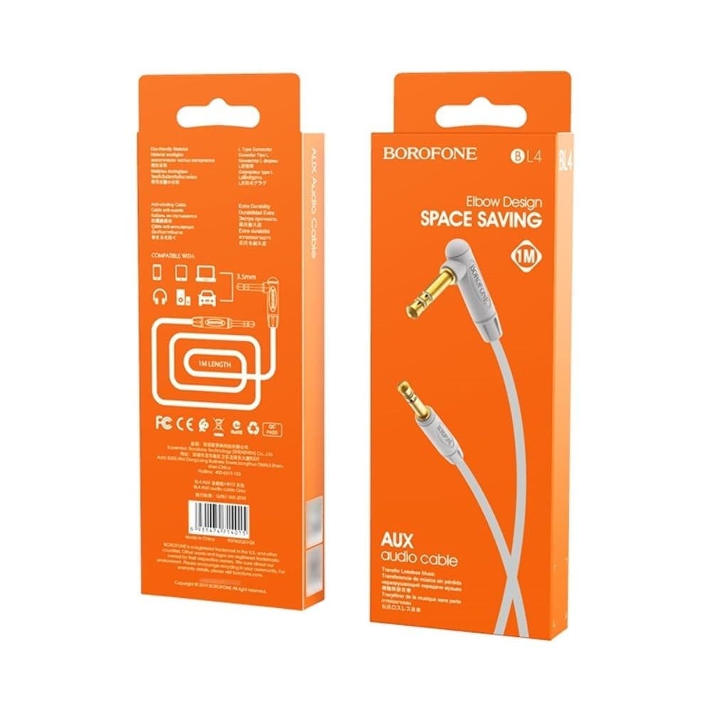 AUX-USB-кабель Borofone BL4, Jack 3.5 на Jack, 100 см, сірий
