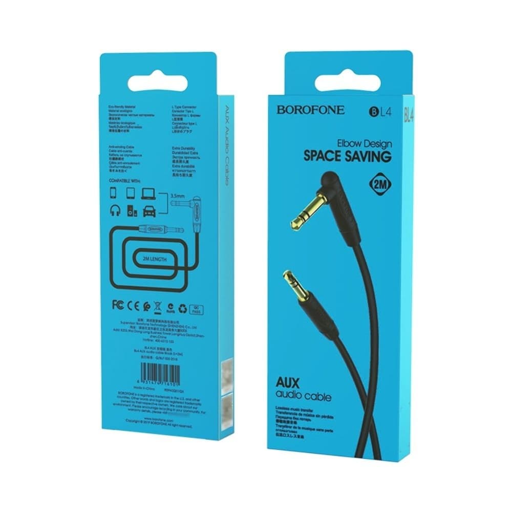 AUX-USB-кабель Borofone BL4, Jack 3.5 на Jack 3.5, 100 см, чорний