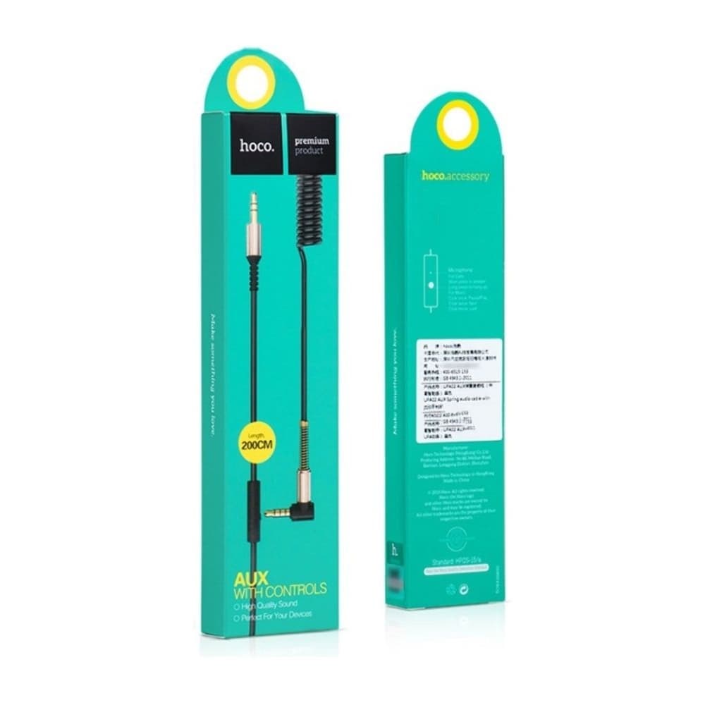 AUX-USB-кабель Hoco UPA02, Jack 3.5 на Jack 3.5, 200 см, с микрофоном, чорний