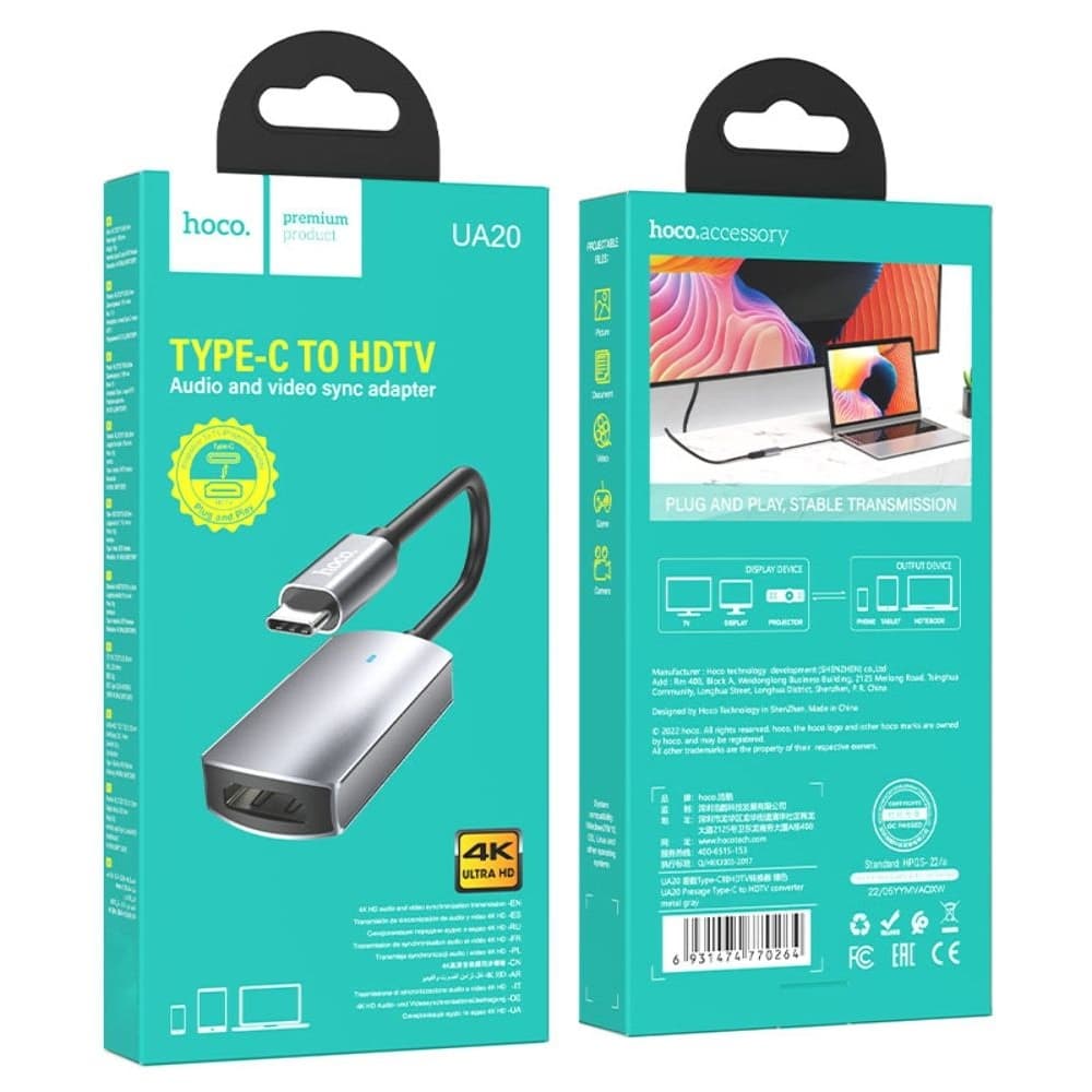 Купить Адаптер-переходник Hoco UA20, 4K, Type-C на HDMI (F), 11 см, серебристый можно и в нашем офисе, платить за доставку при этом не нужно.