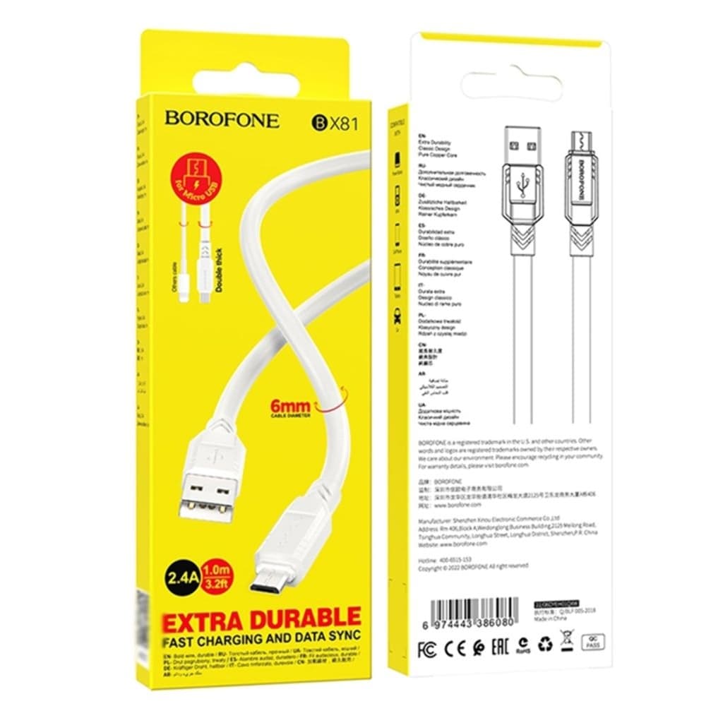 USB-кабель Borofone BX81, Micro-USB, 2.4 А, 100 см, білий