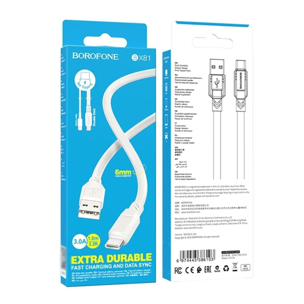 USB-кабель Borofone BX81, Type-C, 3.0 А, 100 см, білий