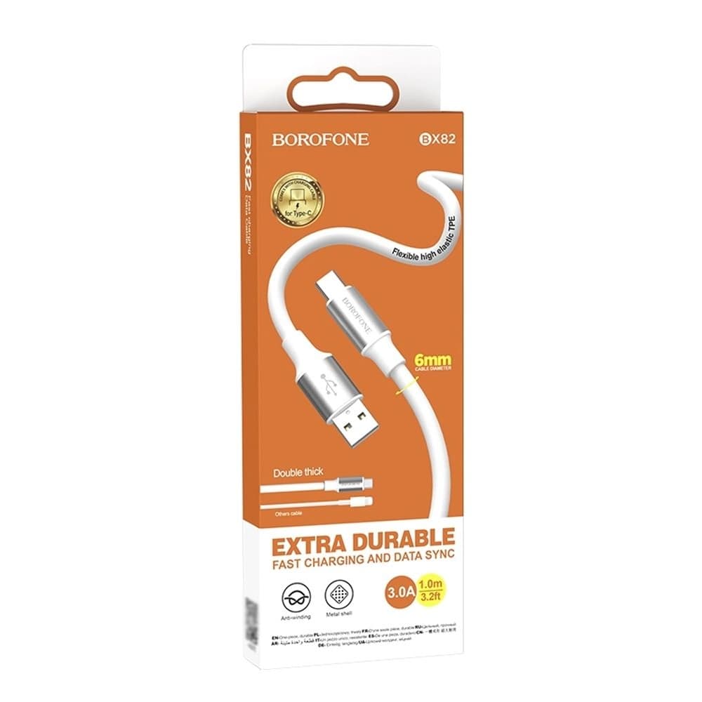 USB-кабель Borofone BX82, Type-C, 3.0 А, 100 см, білий