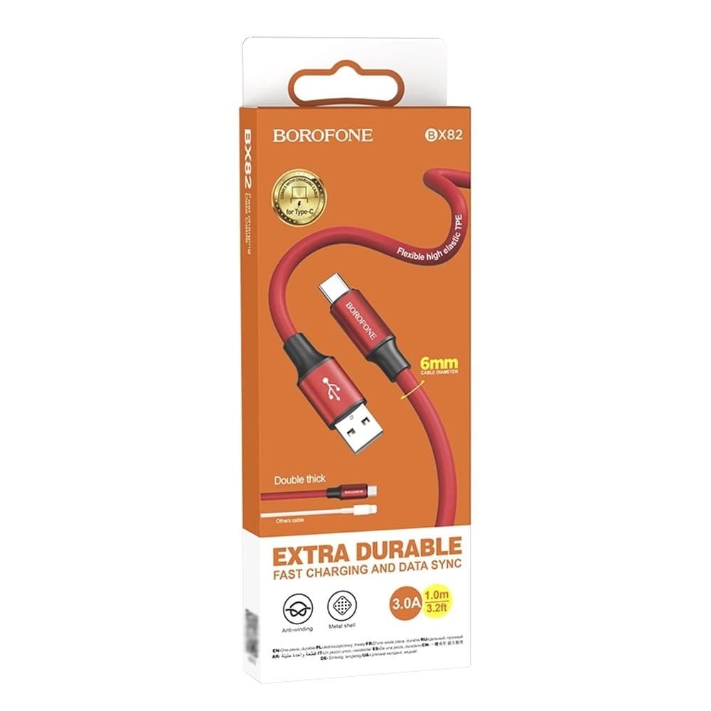 USB-кабель Borofone BX82, Type-C, 3.0 А, 100 см, красный