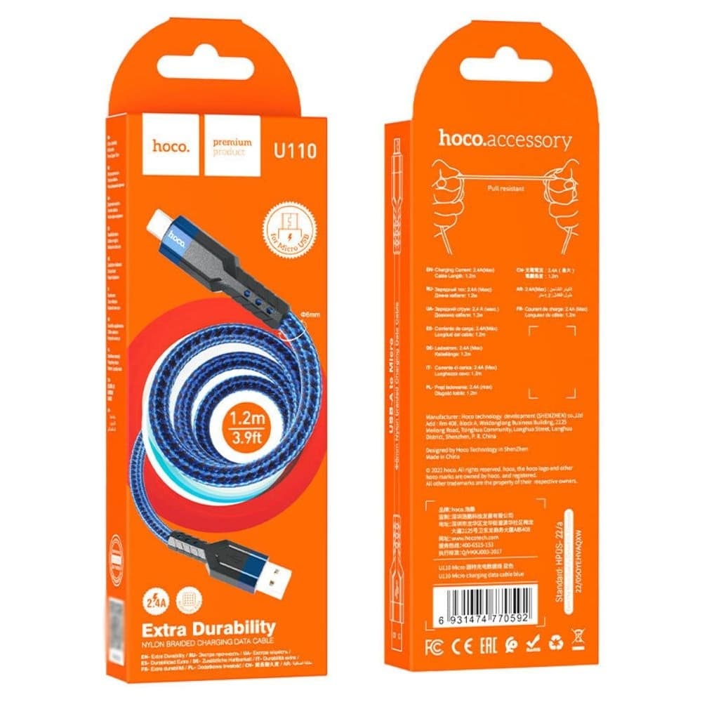 USB-кабель Hoco U110, Micro-USB, 2.4 А, 120 см, синій