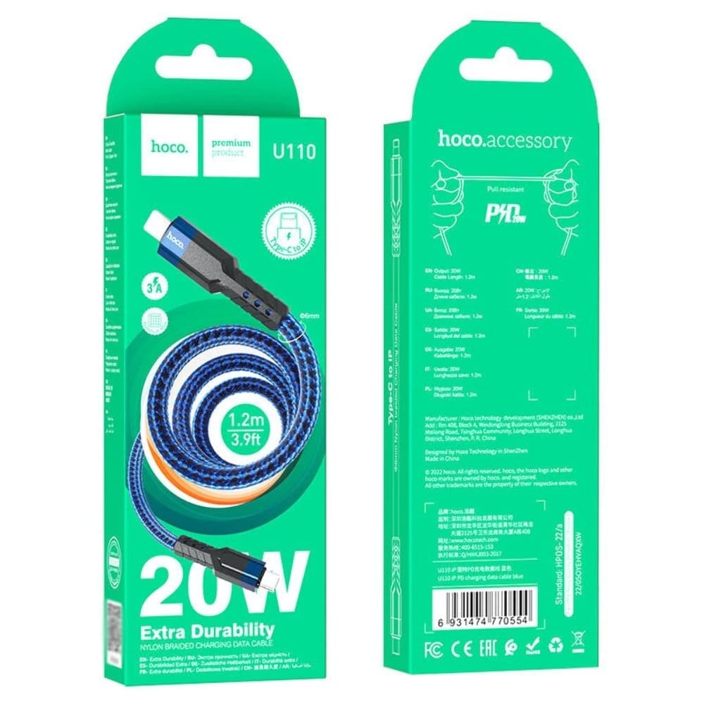 USB-кабель Hoco U110, Type-C на Lightning, 120 см, Power Delivery (20 Вт), синій