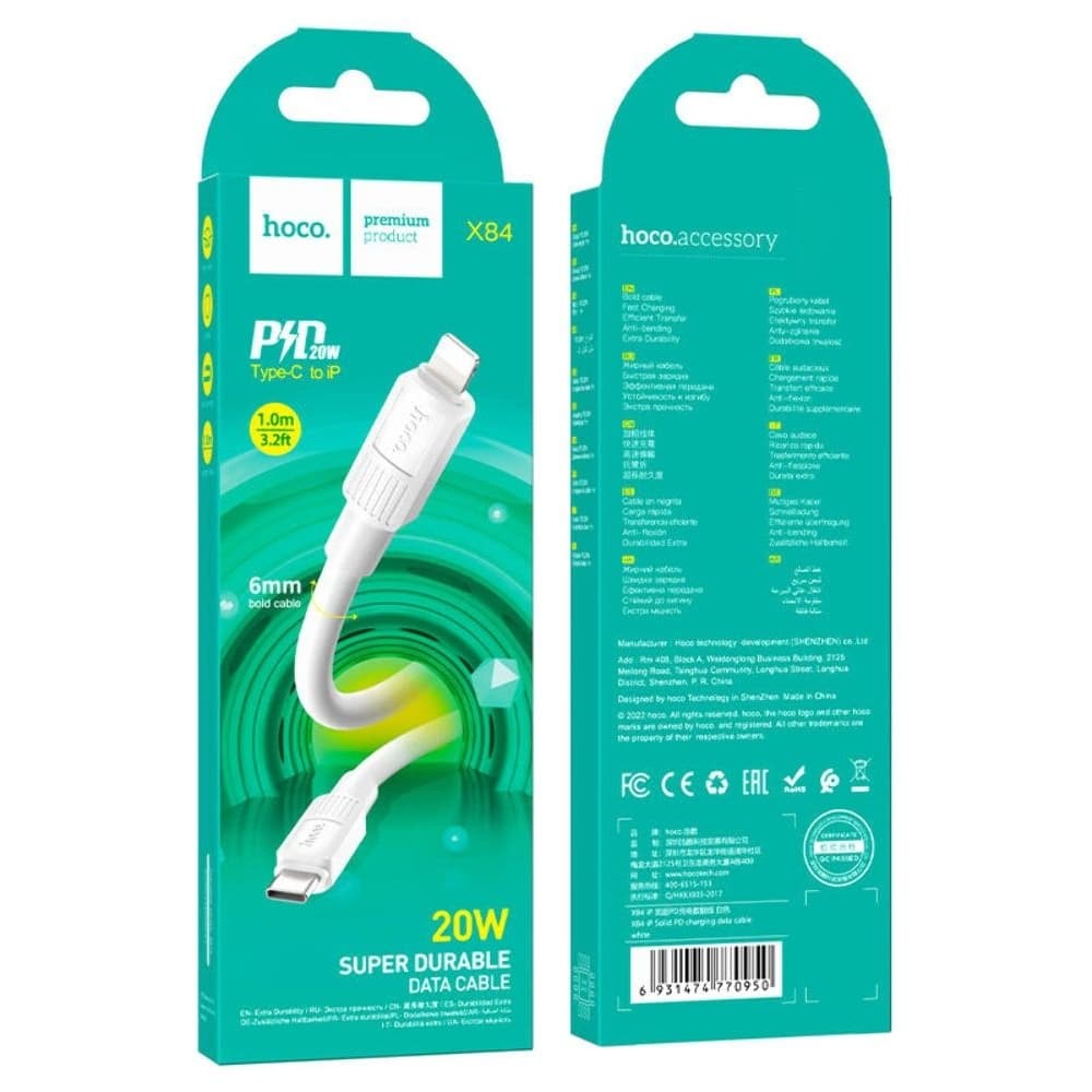 USB-кабель Hoco X84, Type-C на Lightning, Power Delivery (20 Вт), 100 см, білий