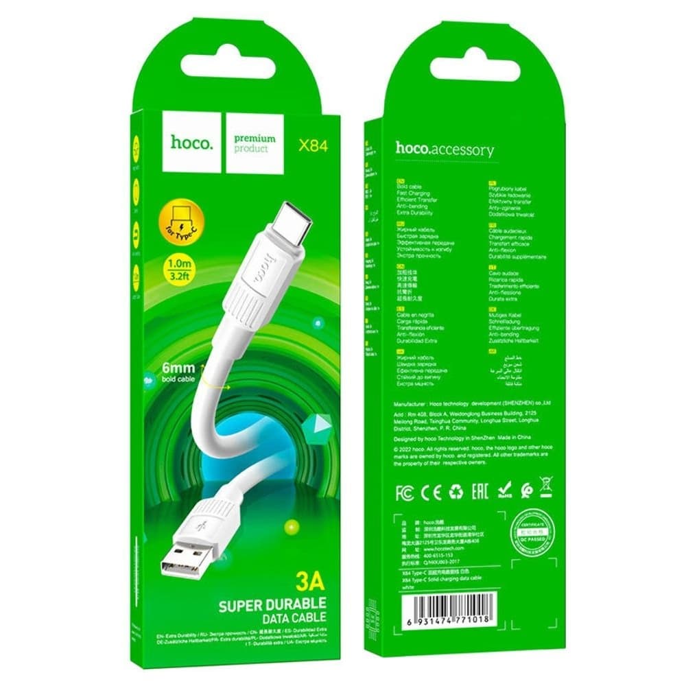 USB-кабель Hoco X84, Type-C, 3.0 А, 100 см, білий