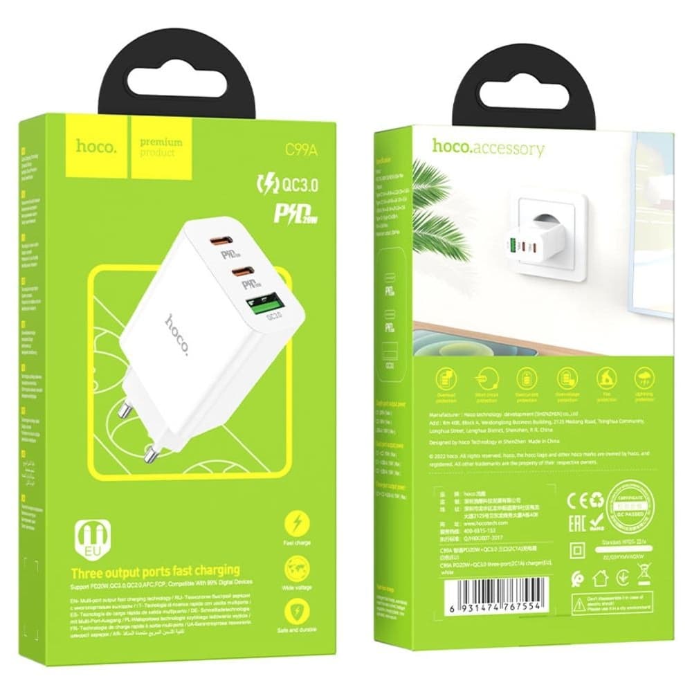 Купить Сетевое зарядное устройство Hoco C99A, Power Delivery (20 Вт), 2 USB, QC3, белое можно и в нашем офисе, платить за доставку при этом не нужно.
