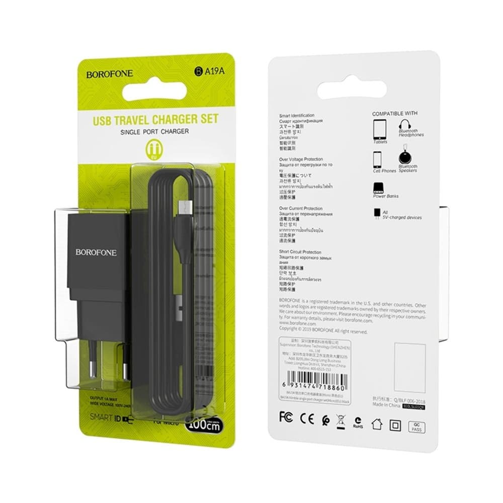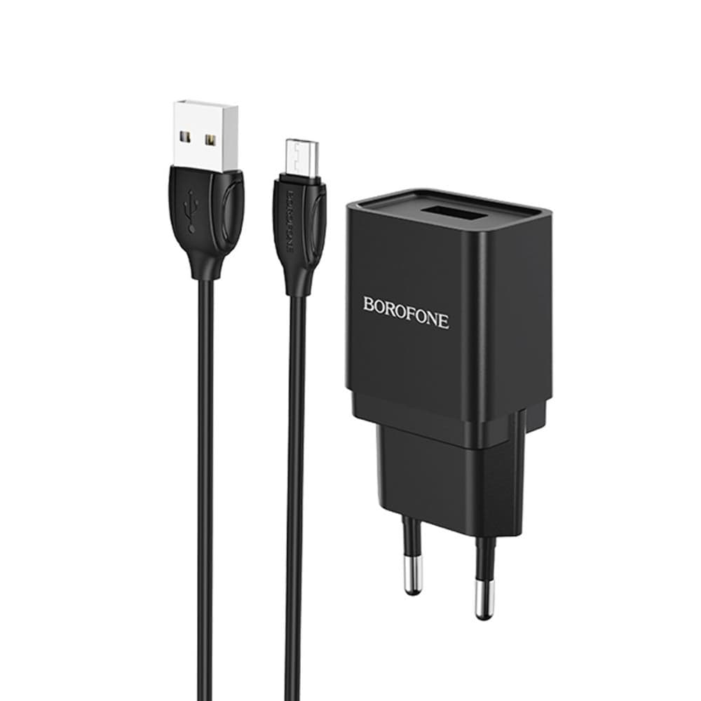 Сетевое зарядное устройство Borofone BA19A, 1 USB, 1A, Micro-USB, черное
