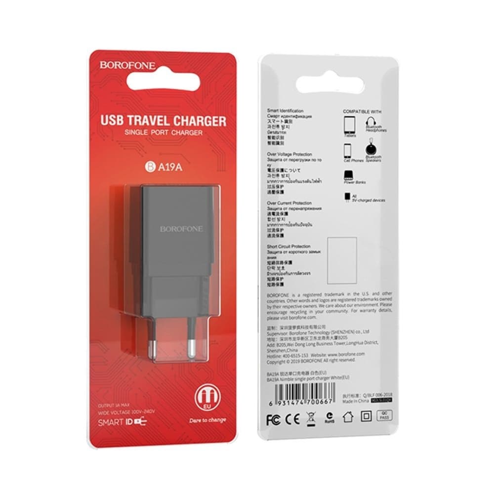 Купить Сетевое зарядное устройство Borofone BA19A, 1 USB, 1.0 А, черное можно и в нашем офисе, платить за доставку при этом не нужно.