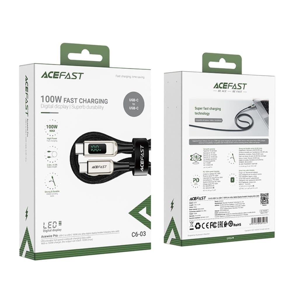 USB-кабель Acefast C6-03, с дисплеем, Type-C на Type-C, Power Delivery (100 Вт), 200 см, серебристый