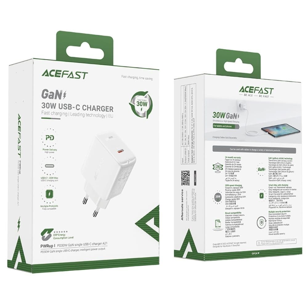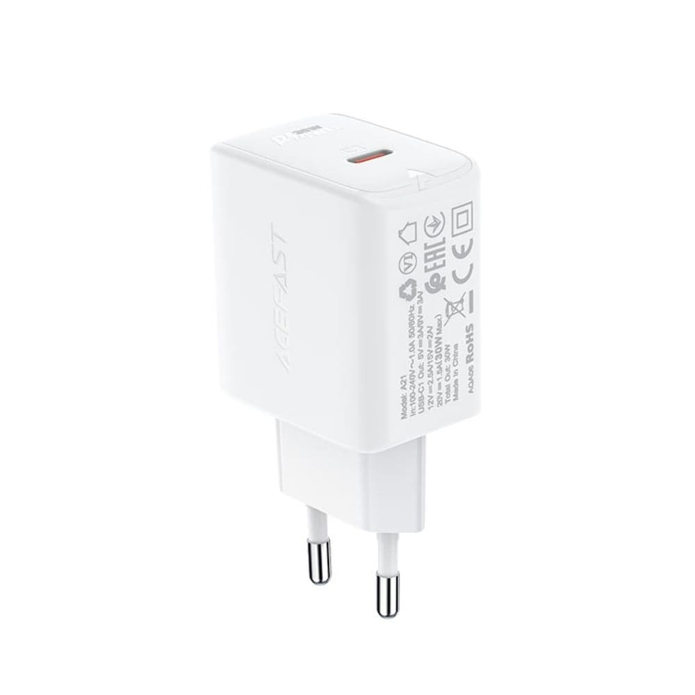 Сетевое зарядное устройство Acefast A21, 1 Type-C, 3.0 А, 30 Вт, Power Delivery, Quick Charge, белое