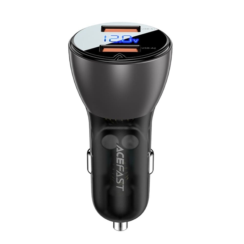 Автомобильний зарядний пристрій Acefast B7, 2 USB, 5 А, 45 Вт, Quick Charge, c дисплеем, черное | зарядка, зарядное устройство