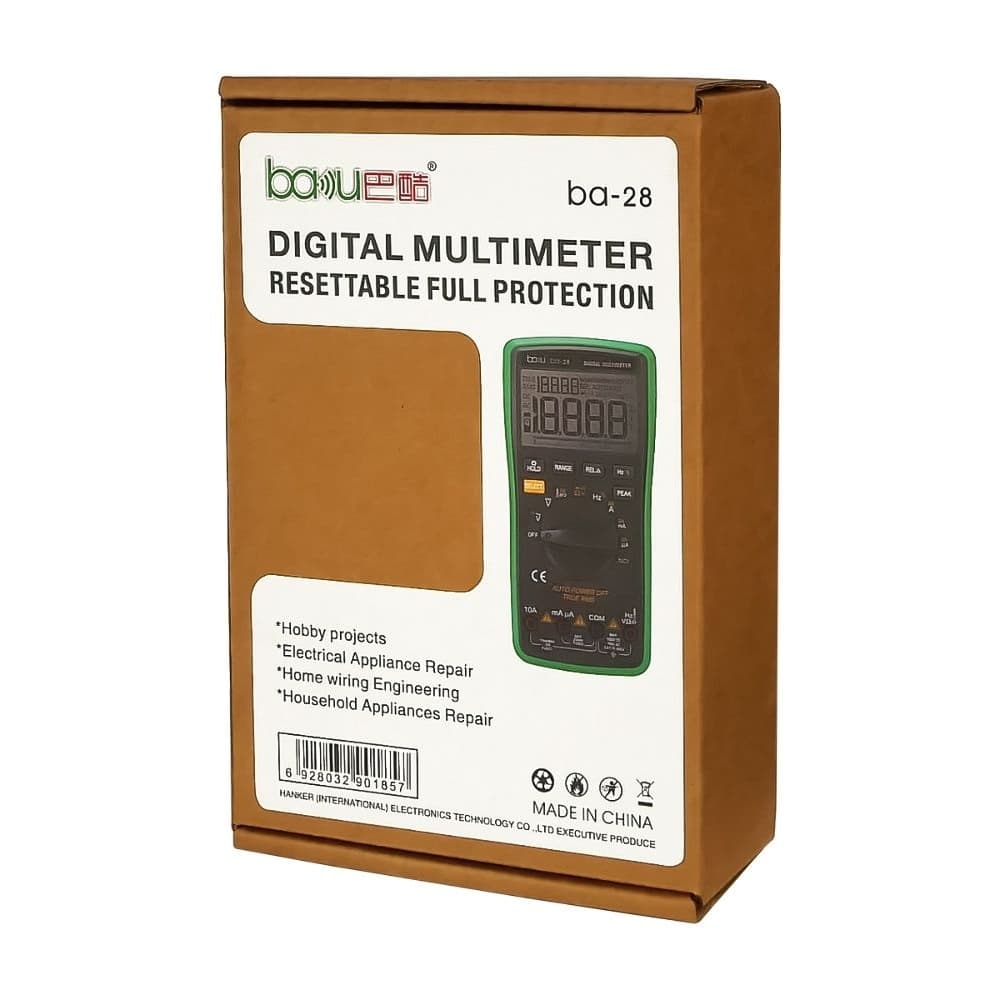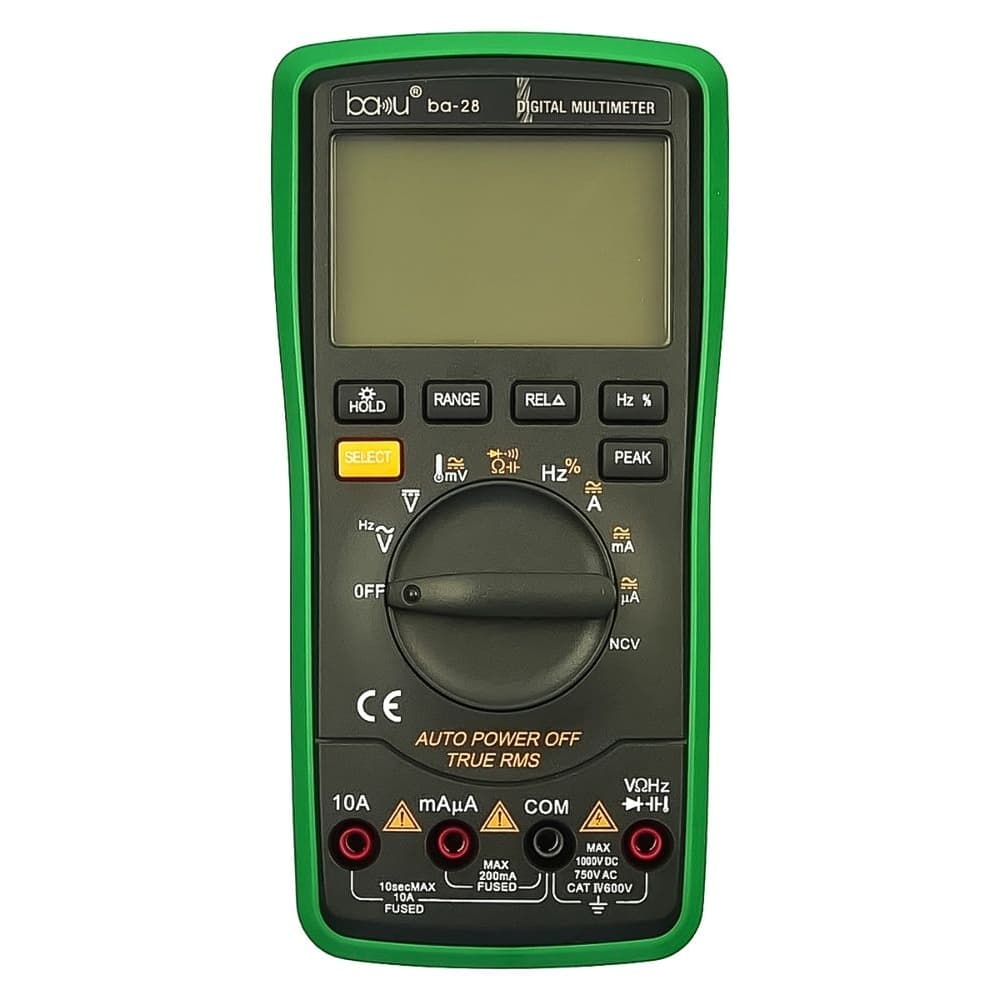 Купить Мультиметр цифровой Baku BA-28 с функцией Auto Off, подсветкой, автоопределением номинала измерения (ток до 10A) можно и в нашем офисе, платить за доставку при этом не нужно.