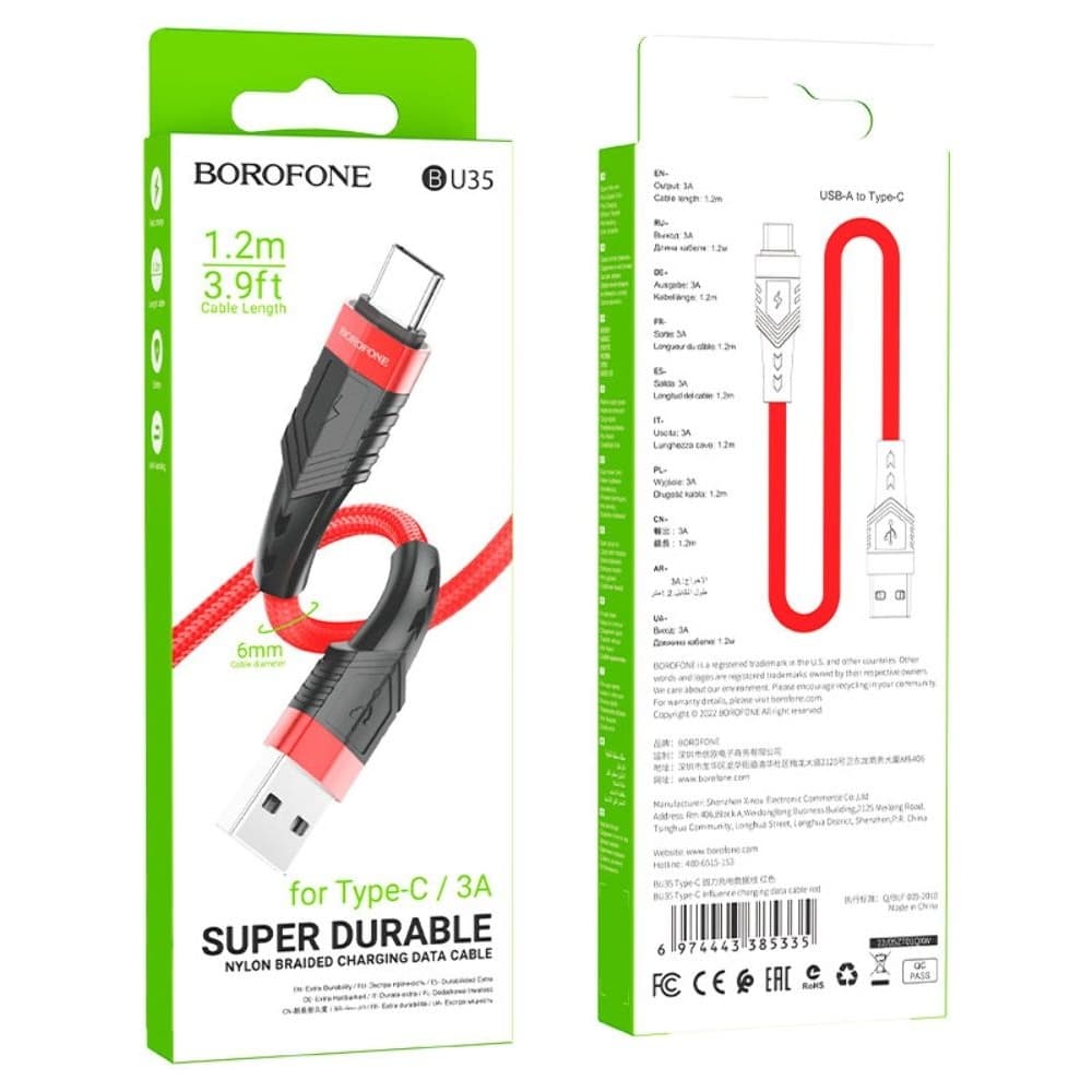 USB-кабель Borofone BU35, Type-C, красный
