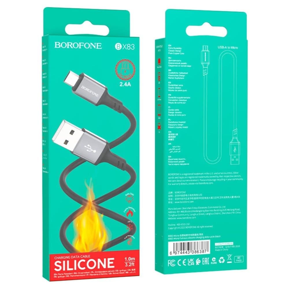 USB-кабель Borofone BX83, Micro-USB, чорний