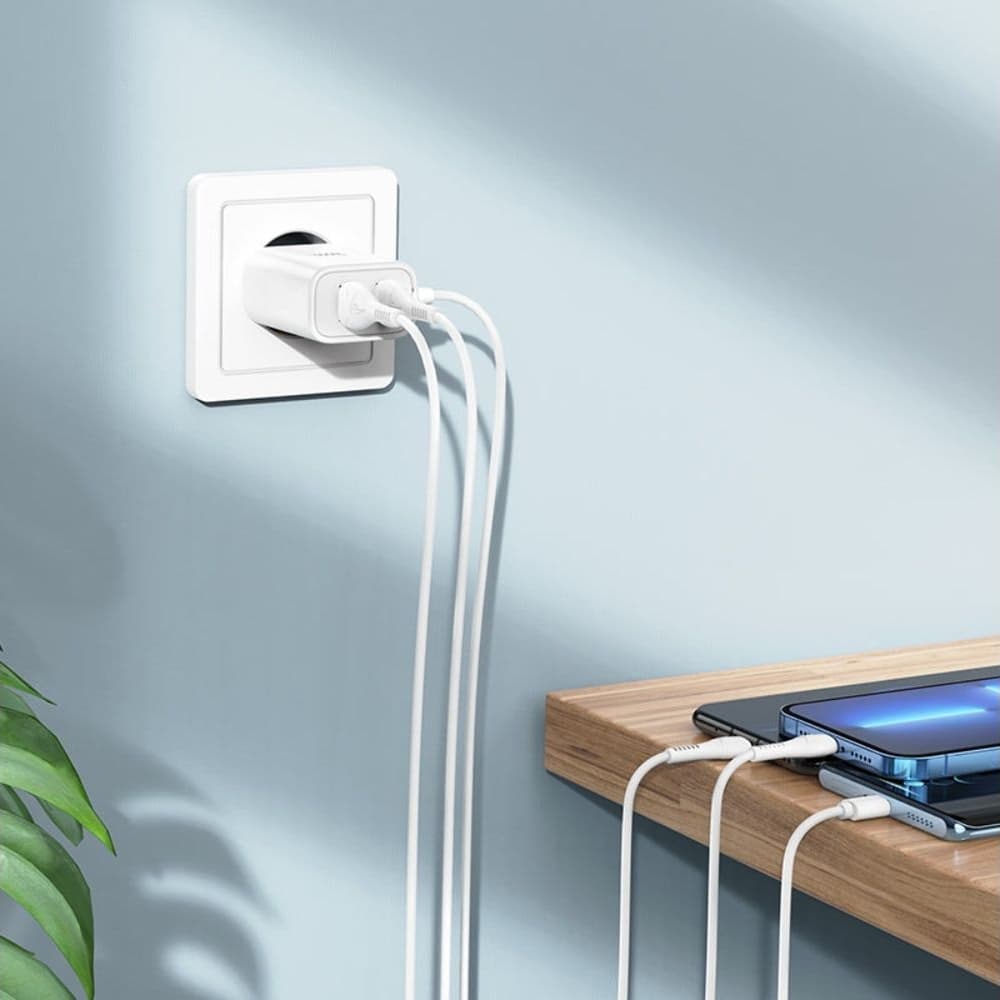 Купить Сетевое зарядное устройство Hoco C103A, 2 USB, с кабелем USB Type-C, белое можно и в нашем офисе, платить за доставку при этом не нужно.