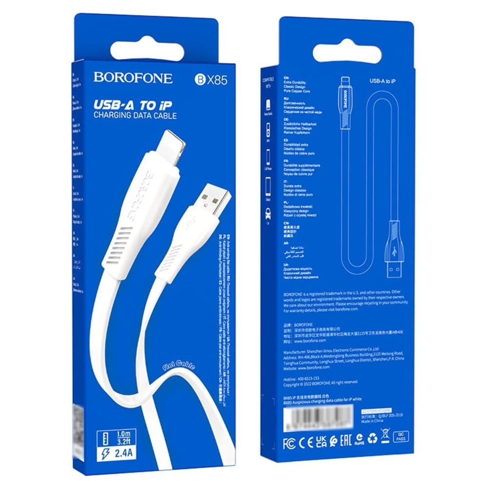 USB-кабель Borofone BX85, Lightning, 2.4 А, 100 см, білий