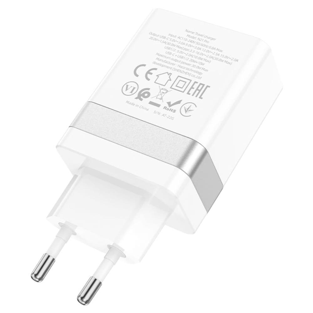 Сетевое зарядное устройство Hoco N21 Pro, 2 USB, 1 USB Type-C, Power Delivery (30 Вт), белое