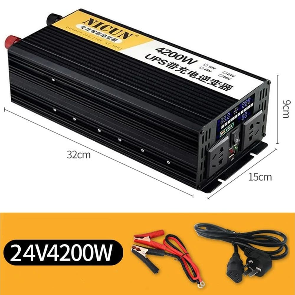 Купить Инвертор Nicun SFX24-220, 1500 Вт (номинал), 4200 Вт (пиковая нагрузка, старт), DC 24V - AC 220V, с функцией зарядки аккумулятора | преобразователь напряжения можно и в нашем офисе, платить за доставку при этом не нужно.