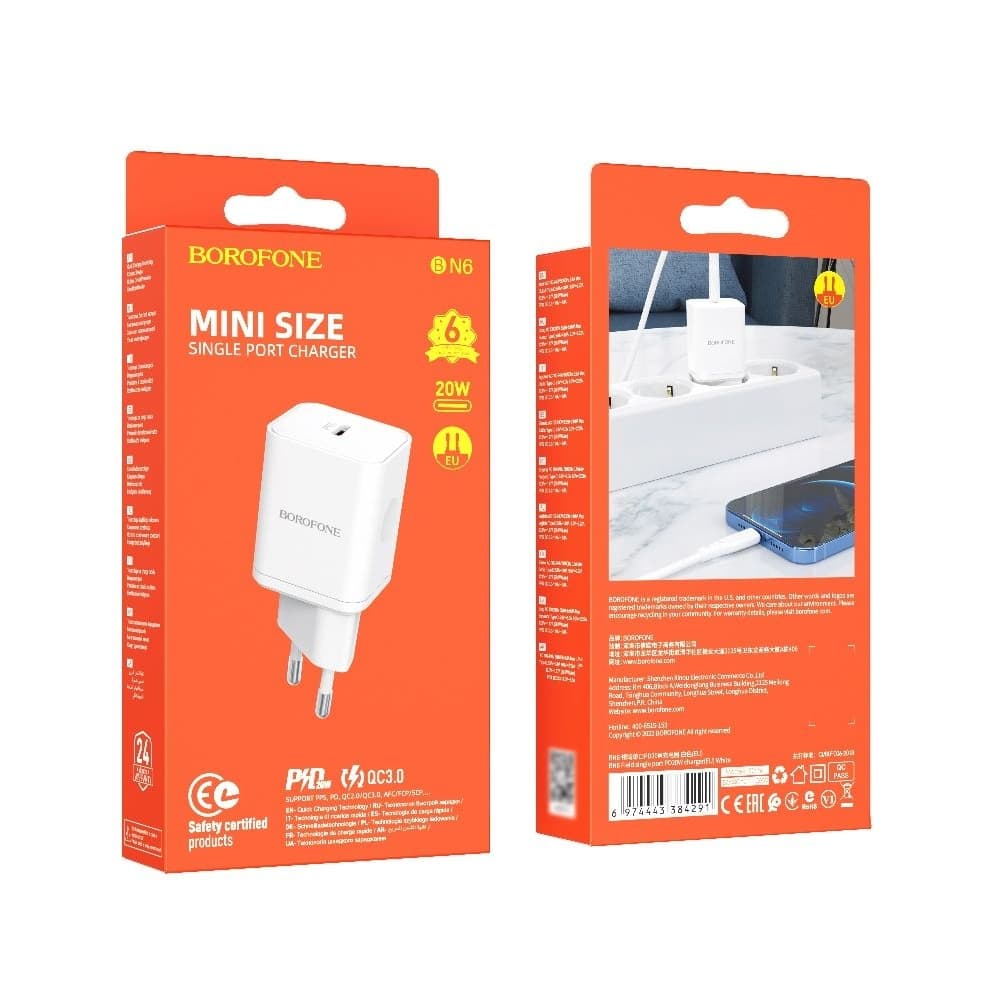 Сетевое зарядное устройство Borofone BN6, Power Delivery, 20 Вт, белое