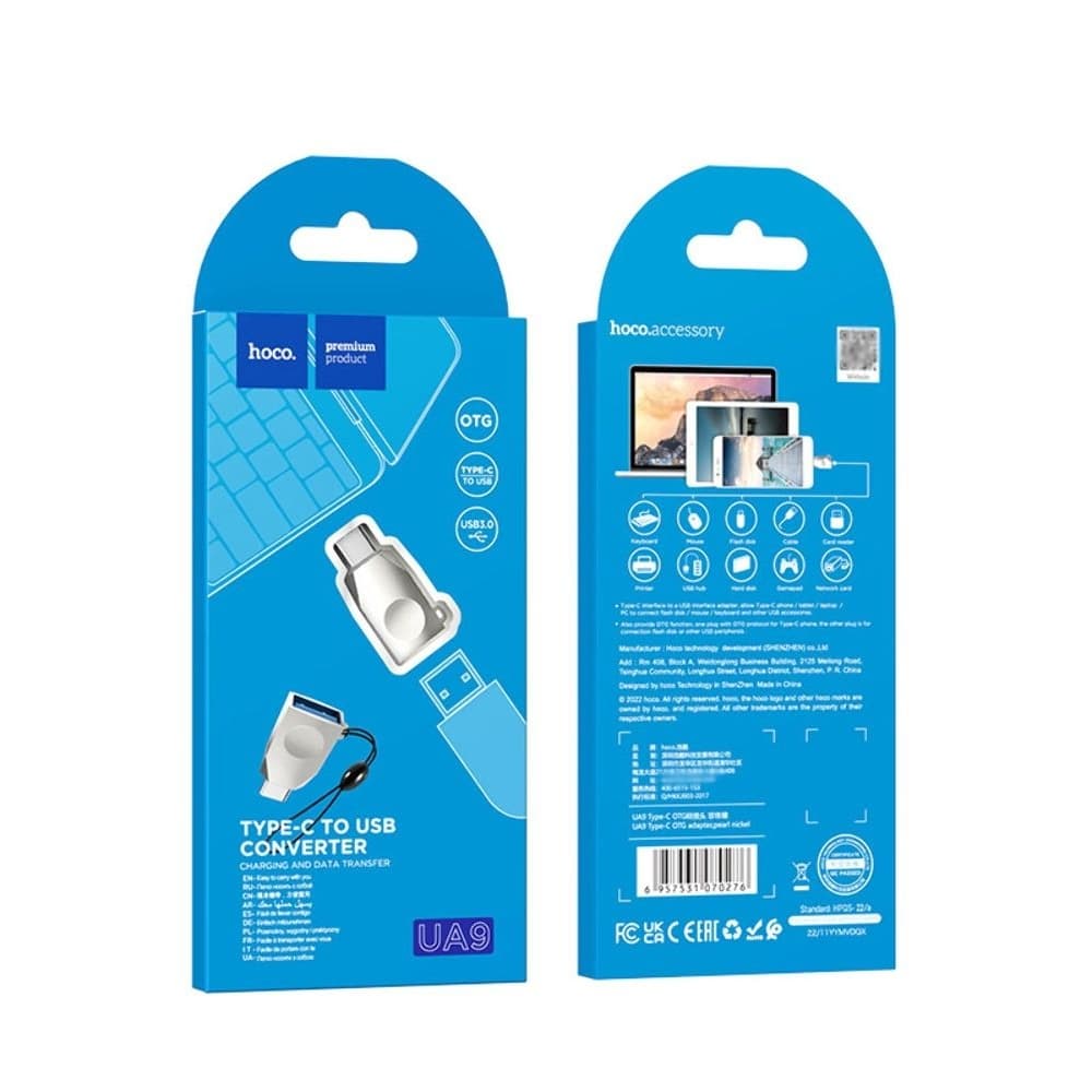 OTG-переходник Hoco UA9, Type-C на USB 3.0 (F), серебристый