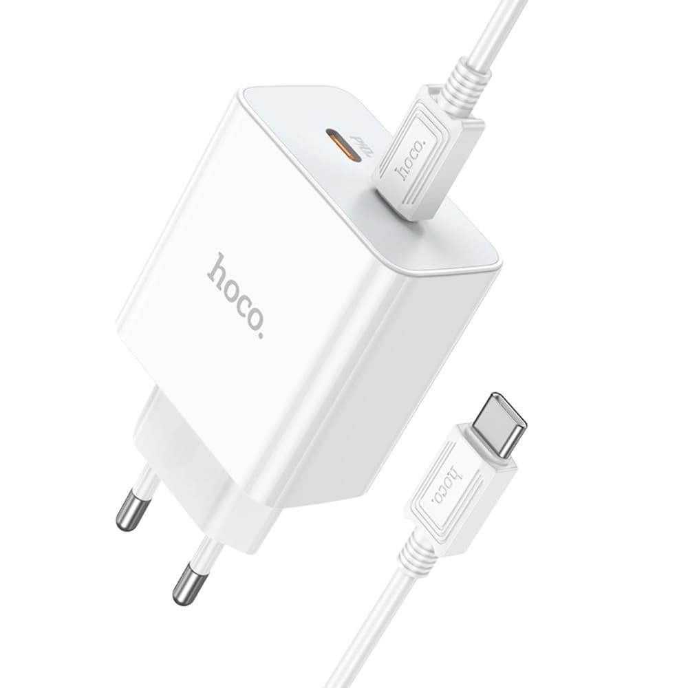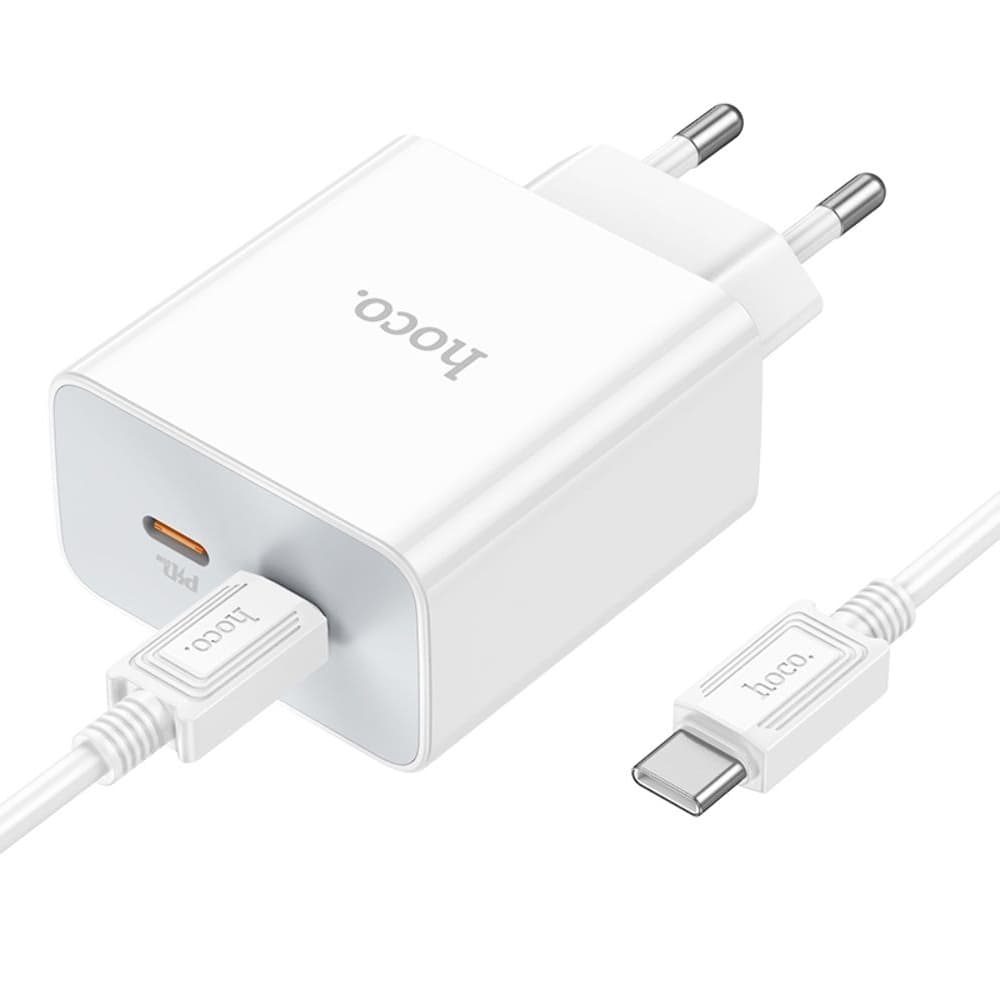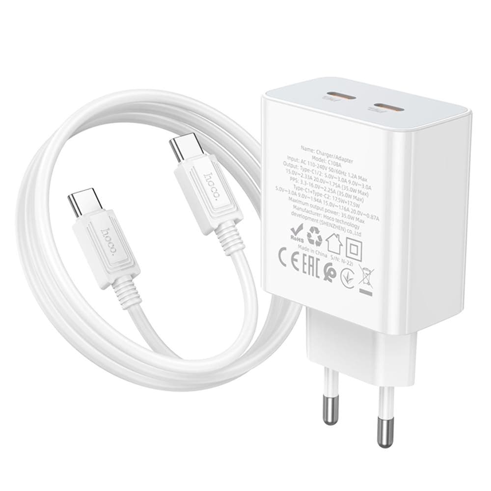 Купить Сетевое зарядное устройство Hoco C108A, 2 USB Type-C, Power Delivery (35 Вт), кабель Type-C на Type-C, белое можно и в нашем офисе, платить за доставку при этом не нужно.