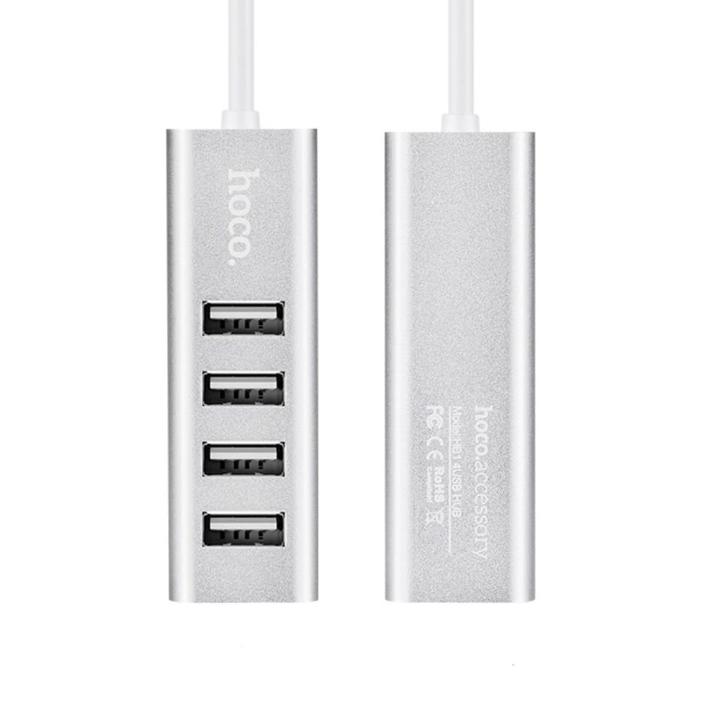 Купить Мультиадаптер Hoco HB1, Type-C на 4 USB 2.0 (F), 80 см, серебристый | USB-хаб можно и в нашем офисе, платить за доставку при этом не нужно.