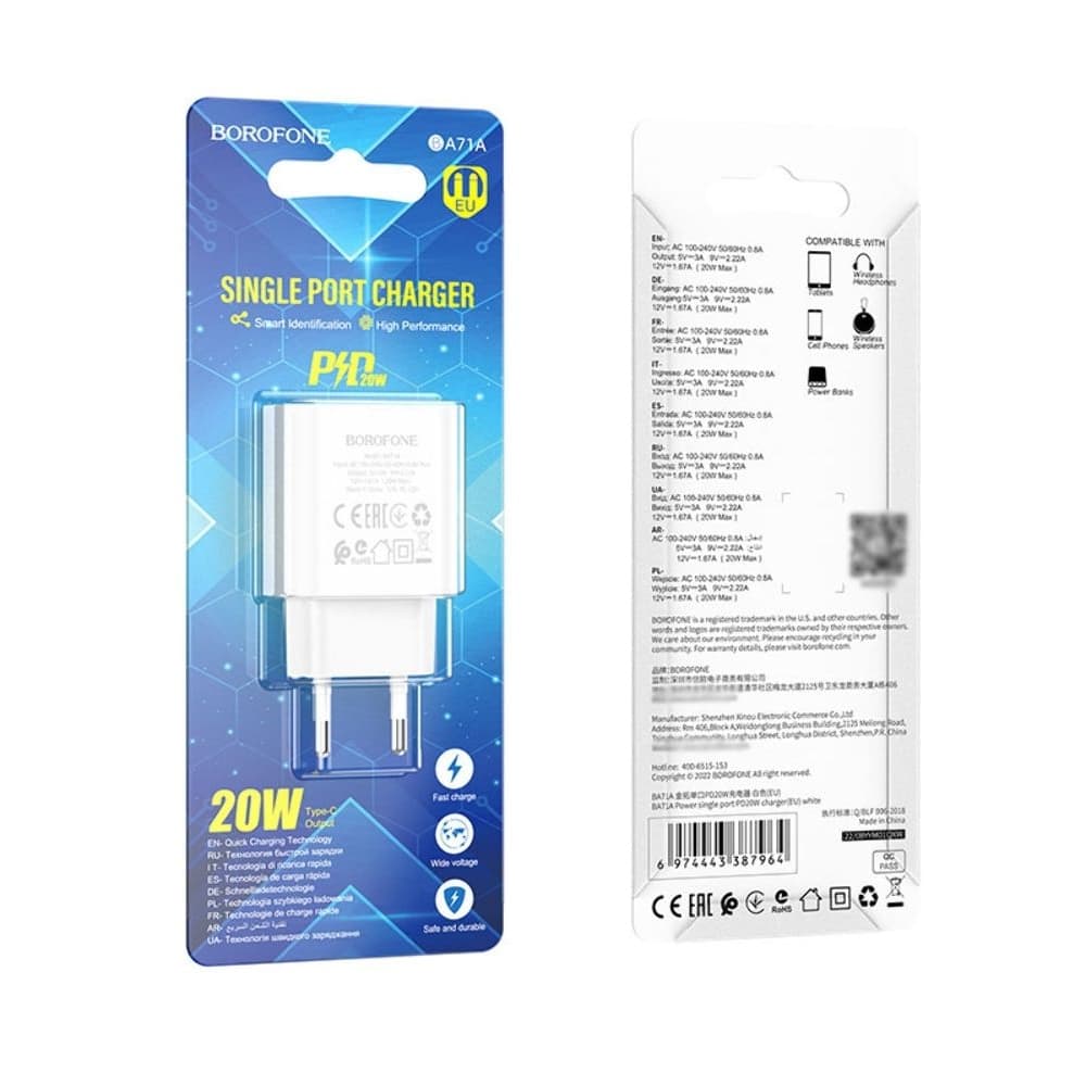 Купить Сетевое зарядное устройство Borofone BA71A, Type-C, Power Delivery (20 Вт), белое можно и в нашем офисе, платить за доставку при этом не нужно.