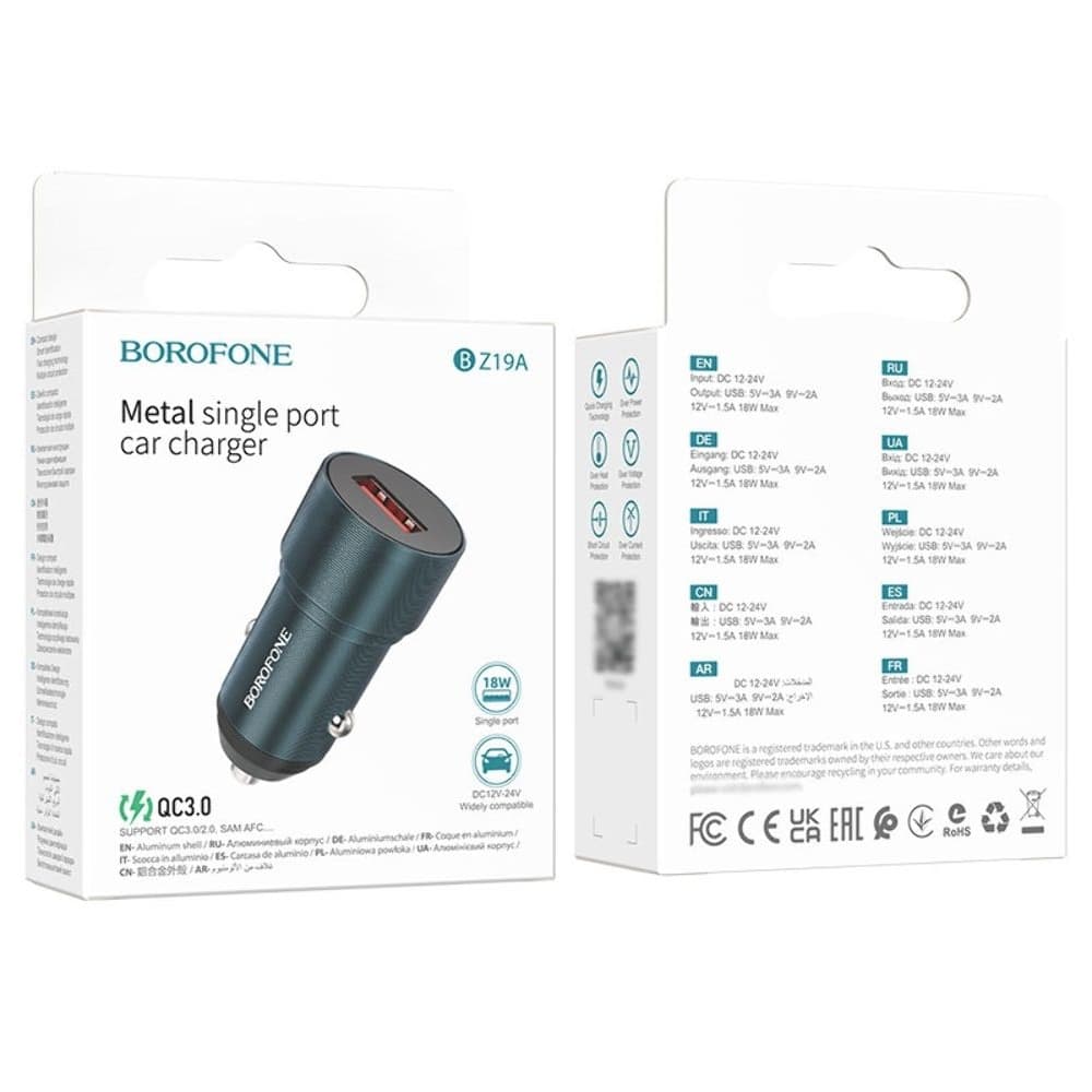 Купить Автомобильний зарядний пристрій Borofone BZ19A, 1 USB, Quick Charge 3.0, 18 Вт, синее | зарядка, зарядное устройство можно и в нашем офисе, платить за доставку при этом не нужно.