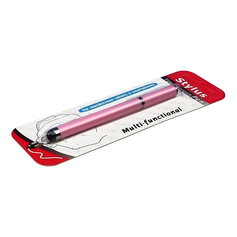 Стилус емкостный, с шариковой ручкой, металлический, розовый