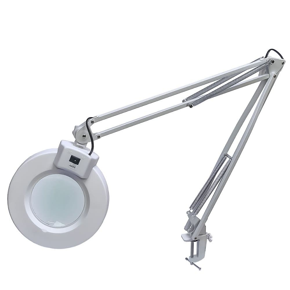 Лупа Aida A-195, на складной ноге, со струбциной, с подсветкой, d=126 мм, 5X