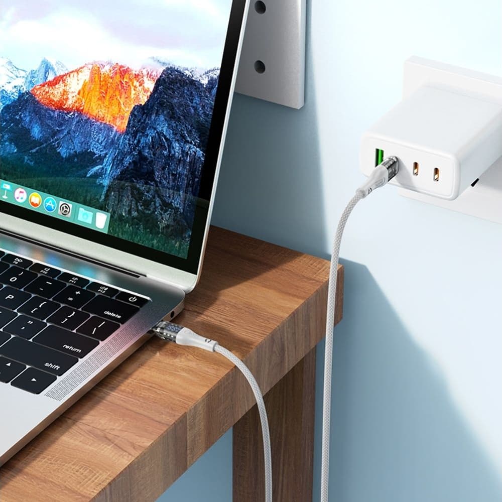USB-кабель Hoco U115, Type-C на Type-C, Power Delivery (100 Вт), 120 см, с дисплеем, сірий