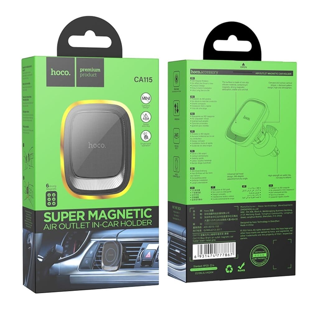 Автодержатель Hoco CA115, магнитный, чорний, сірий