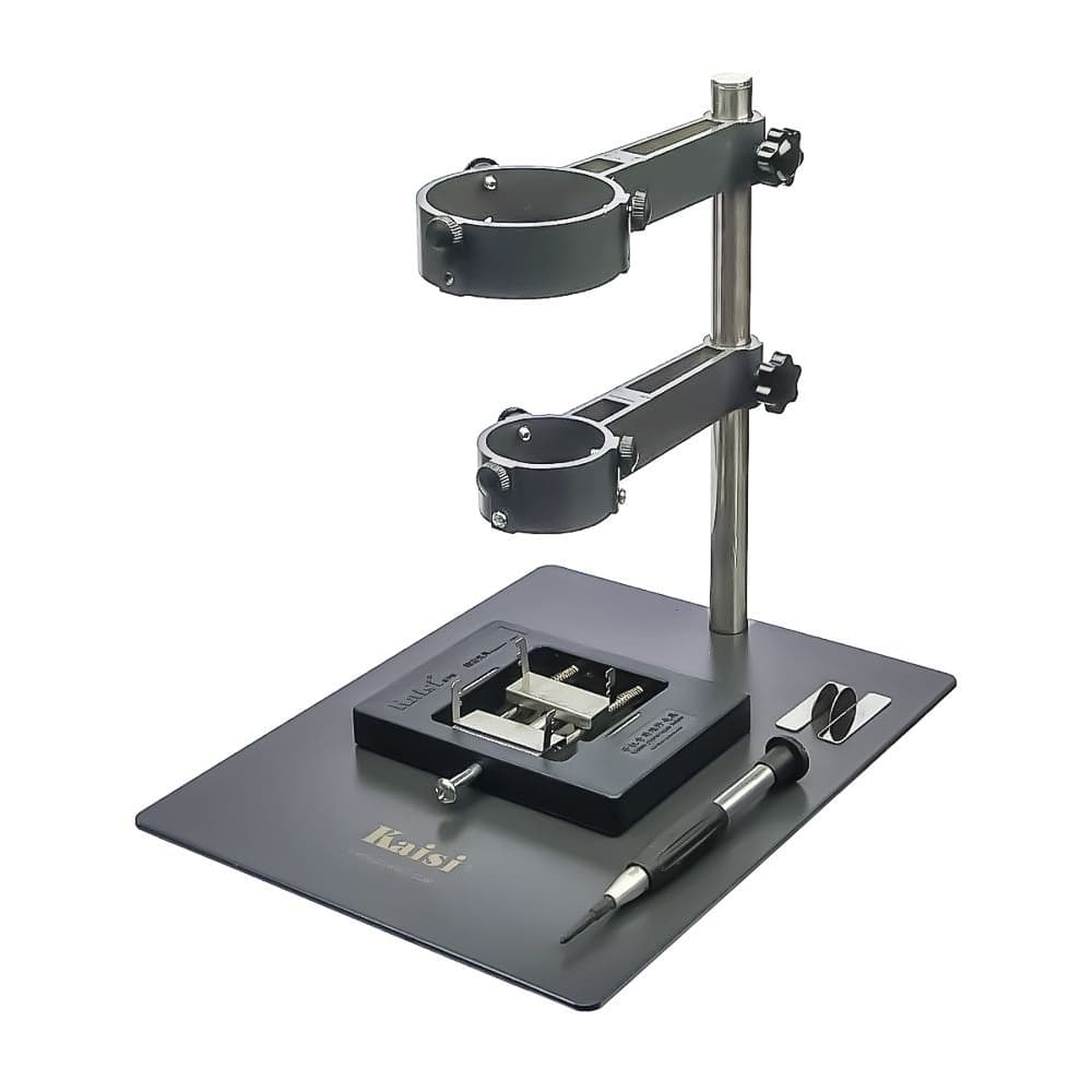 Тримач фена (третья рука) Kaisi F-204, диаметр крепёжных колец 41 мм и 63 мм, с двумя держателями плат | держатель