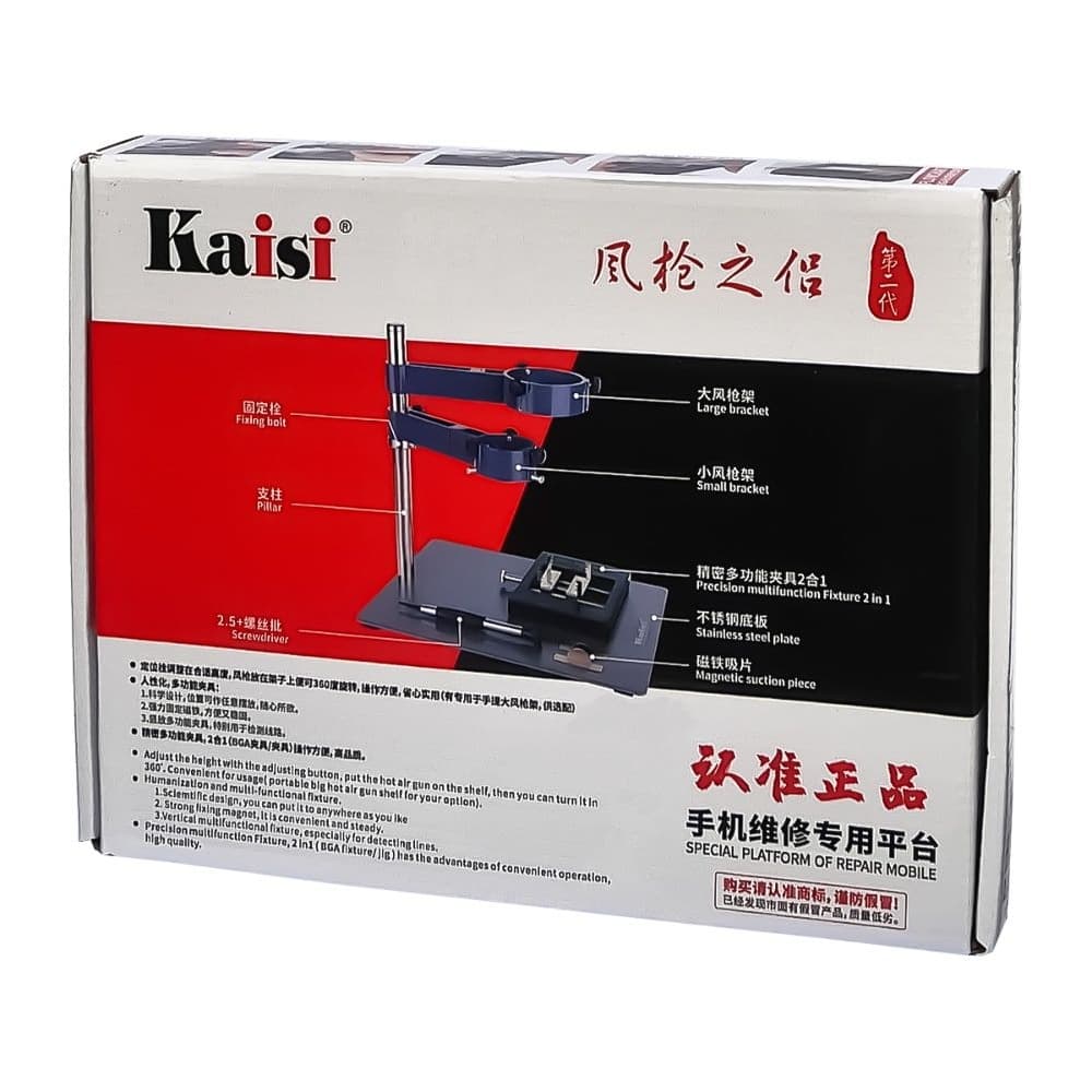 Купить Тримач фена (третья рука) Kaisi F-204, диаметр крепёжных колец 41 мм и 63 мм, с двумя держателями плат | держатель можно и в нашем офисе, платить за доставку при этом не нужно.