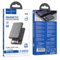 Power bank Hoco Q18, 10000mAh, PD, 22.5W, магнитный, с функцией беспроводной зарядки, чорний