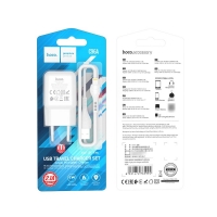 Сетевое зарядное устройство Hoco C96A, USB, белое, с кабелем USB на Lightning