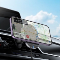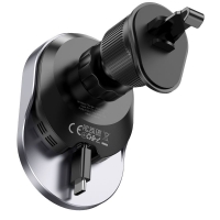 Автодержатель Hoco HW12, магнитный, с функцией беспроводной зарядки, чорний, сірий
