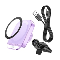 Автодержатель Hoco HW17, магнитный, с функцией беспроводной зарядки, romantic purple