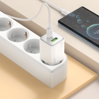 Сетевое зарядное устройство Hoco N41 USB/ Type-C PD QC white + кабель Type-C to Type-C