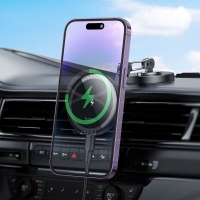 Автодержатель Hoco HW26 магнитный с беспроводной зарядкой 15W black metal gray