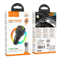 Автомобильное зарядное устройство Hoco NZ17 USB/ 2 Type-C PD 75W black + кабель Type-C to Type-C