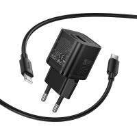 Сетевое зарядное устройство Hoco N65 USB/ Type-C PD QC black + кабель Type-C to Type-C
